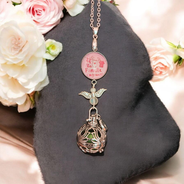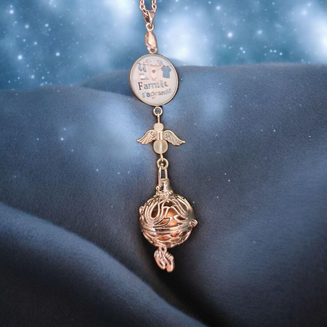Ce bola de grossesse émet un tintement doux et apaisant. À partir du 3ᵉ mois, le bébé commence à percevoir les sons : ce bijou devient alors un repère rassurant qu’il reconnaîtra même après la naissance.