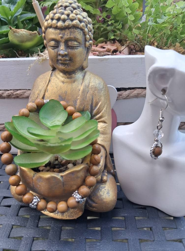 Pour chaque bracelet acheté, une paire de boucles d’oreilles pendantes assorties (pierres naturelles + perles de cristal, acier inoxydable) est offerte.