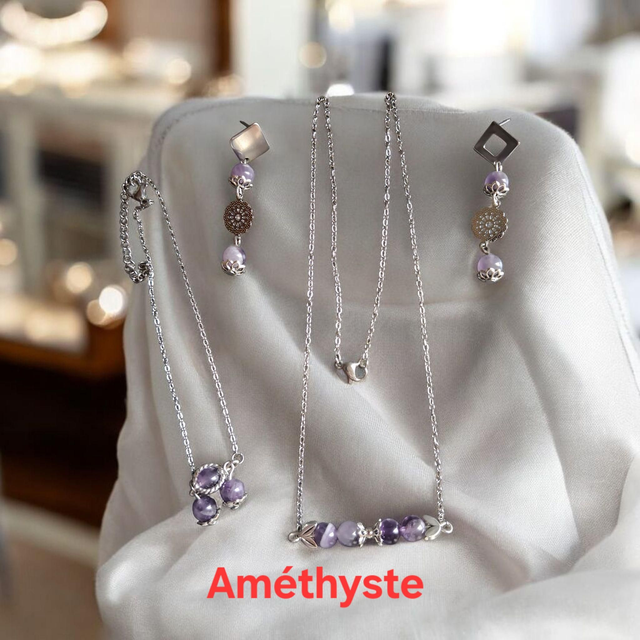 💜 Améthyste – apaise les tensions, favorise le sommeil et la spiritualité
