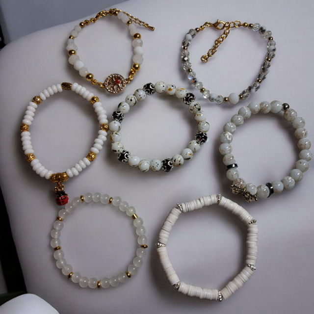 Craquez pour ce lot unique de 7 bracelets , aux perles variées et aux finitions dorées et argentées