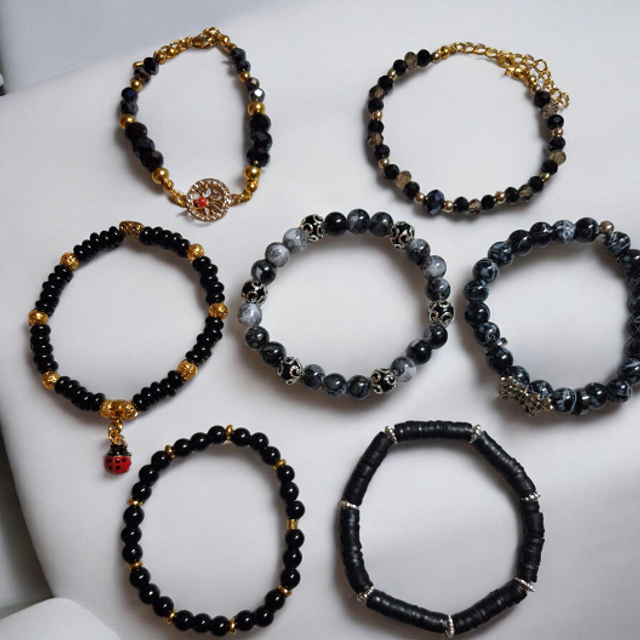 Craquez pour ce lot unique de 7 bracelets , aux perles variées et aux finitions dorées et argentées